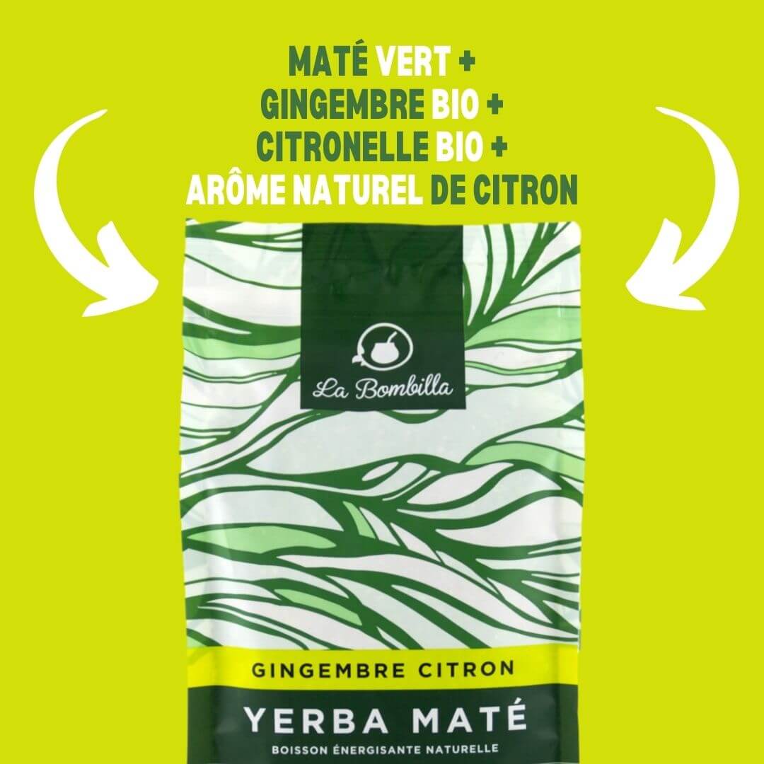 Tous les ingrédients de notre maté Gingembre-Citron sont bio et et ne contiennent aucuns arômes artificiels.