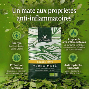 Notre Golden Maté contient une forte teneur en curcuma, bien supérieure aux infusions classiques. De plus, notre formule est formulée par une naturopathe pour maximiser l'absorption par votre organisme, garantissant des bienfaits réels et mesurables.